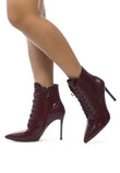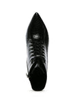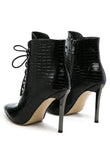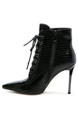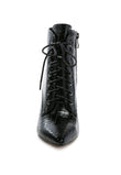 The stud lady! Croc Textured Faux Leather Bootie in lace-up style has an easy to wear zipper fastening on the in-side. The stylish stiletto boot has sturdy and shiny heels that is all ready to make heads turn!
